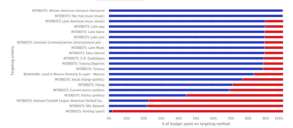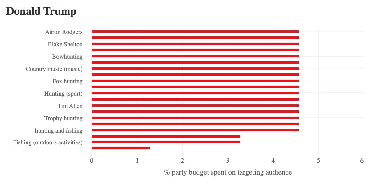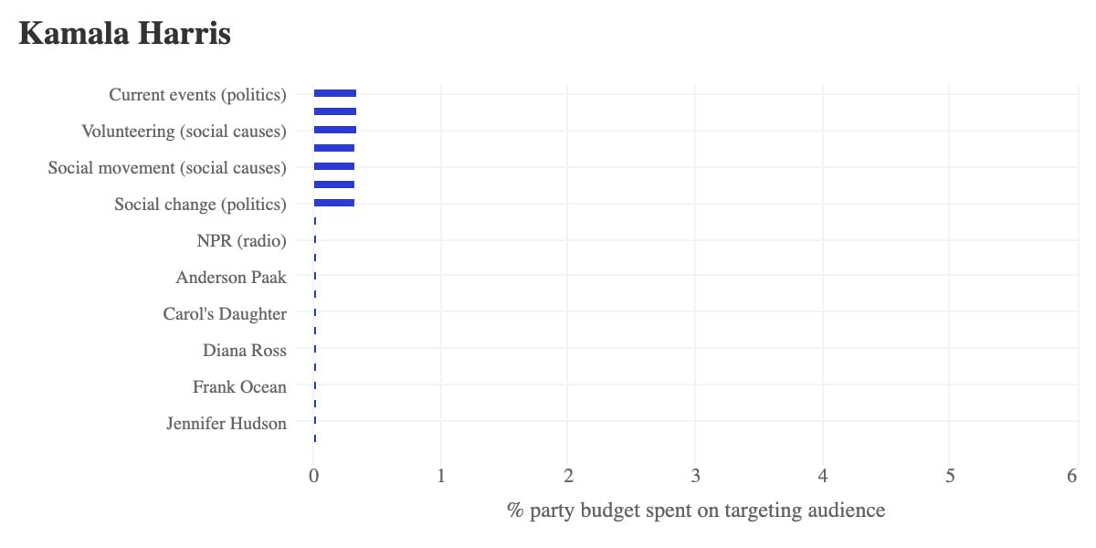Such targeting stats can often be misleading. You just have to look at the somewhat negligible overall keyword targeting from Harris (at least by volume.) But it's a clear indicator that both presidential hopefuls are doubling down on their key supporters, with days left before the election.