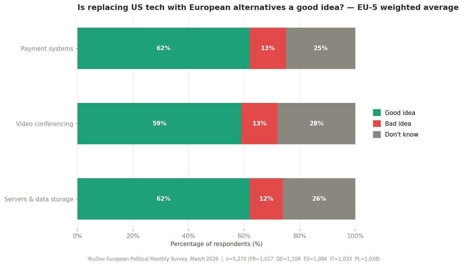So that's the case for the prosecution. A significant percent of citizens in Europe's largest countries, by population, support digital policymaking to replace American tech with European alternatives. Job done. Case closed.